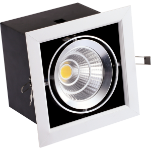 The Plutus Single LED is a 180 x 190mm gimbal recessed downlight using CREE LED engines. The gimbal LED head is mounted in a steel box housing with black internal finish.